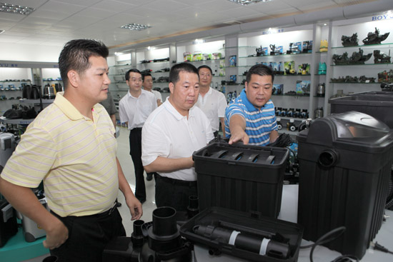 After visited and listened to the introduction of general manager Mr.Yu,Lei Jianmin is happy with our achievement such as products passed the approval of several internal safety certificates,products been sold to more than 80 countries,China Famous Brand,Guangdong Top Brand Pruduct and Guangdong Famous Brand.In the meantime,he hope that BOYU can make persistent efforts,increase more investment on product research and development,develop more high quality product,to occupy more market share at home and abroad.Make good use of Guangdong Aquatic Testing center,increase more investment,enlarge production,improve the company,form the aquatic business group,make aquatic business the pillar cornerstone industry of Raoping even Chaozhou city.