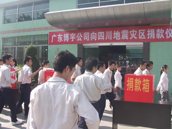 The awful 5.12 earthquake in Sichuan shock the whole nation of China. By now, tens of thousand of people died in this earthquake, while tens of thousand of others lost their home. When disaster struck, help came from all sides! In front of such irresistible natural disaster, only love is the most powerful medicine to cure the pain. Mr. Bingyan Yu, Director of BOYU company, and Mr. Jianqin Yu, General Manager of BOYU, led the BOYU members in time to extend a helping hand to the people in the disaster-stricken areas.