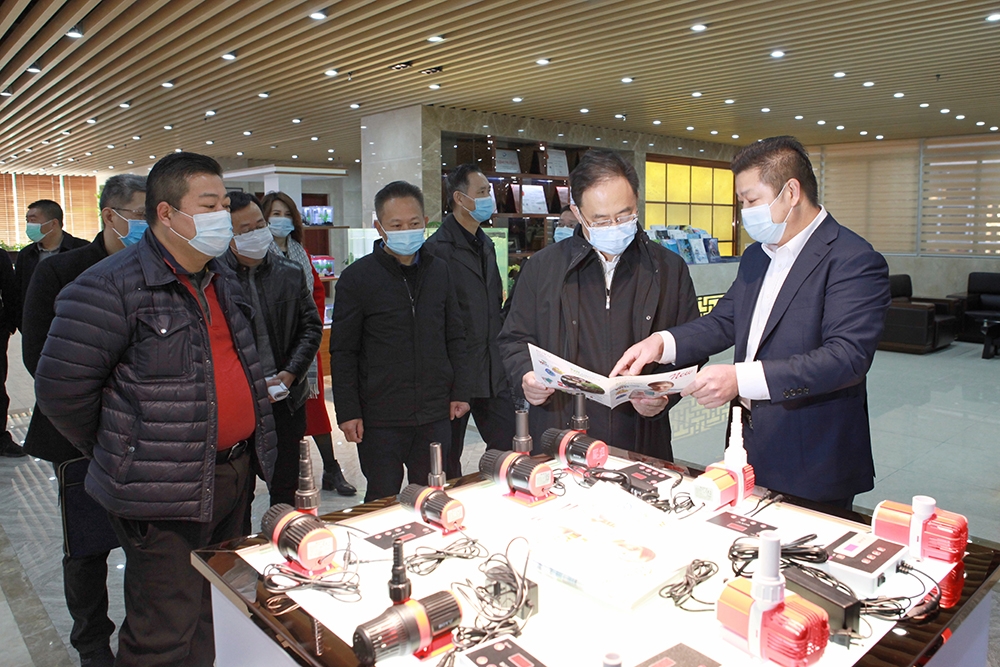 董事長余炳炎向何曉軍市長一行詳細介紹了公司的經營管理近況,以及在產品技術創新和知識產權方面所取得的成就,展示了多項屬行業首創新型智能產品。