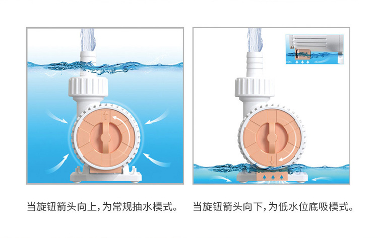 • 內(nèi)置低水位吸水切換裝置,一機(jī)多用,排污更徹底。