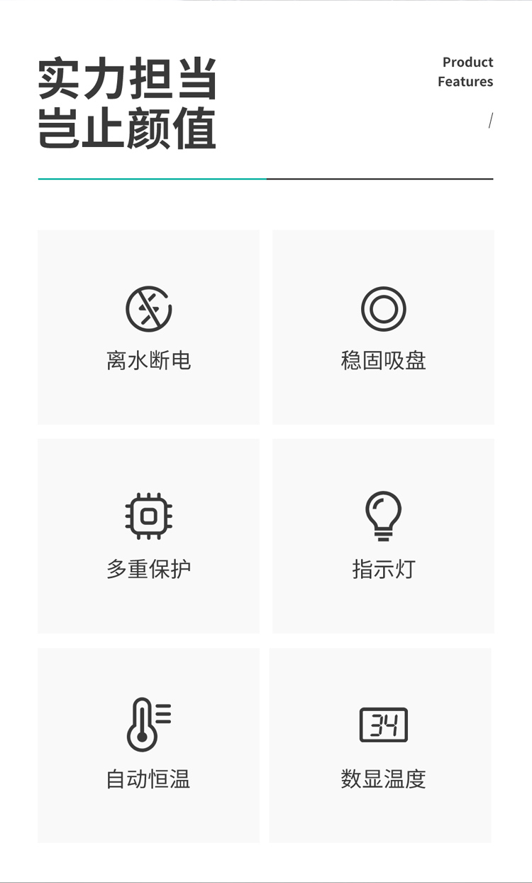 • 離水保護,超溫保護,多重保護更安全;